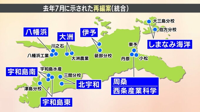 去年7月に愛媛県教育委員会が示した再編案をまとめました。