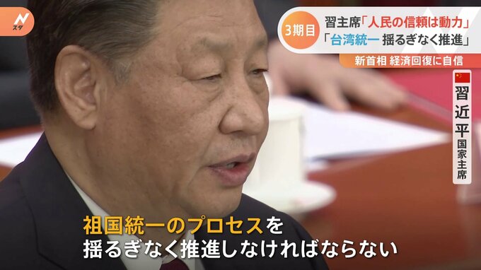 中国の国会にあたる全人代が閉幕しました。国家主席として史上初となる3期目に入った習近平氏は、「祖国統一のプロセスを揺るぎなく推進しなければならない」と演説し、台湾統一に向けた決意を改めて示しました。…