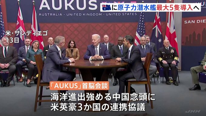 アメリカ・イギリス・オーストラリアの安全保障の枠組み「AUKUS」の首脳会談が開かれ、オーストラリアに原子力潜水艦を最大5隻導入する計画が発表されました。対面では初めてのAUKUSの首脳会談は13日、アメリカで…