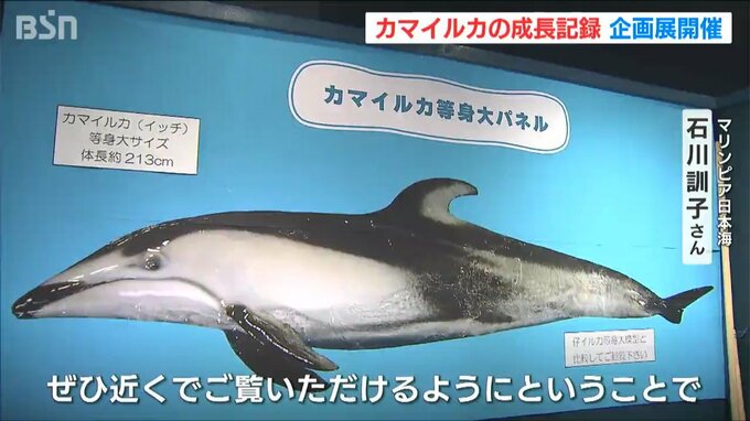 新潟市中央区の水族館『マリンピア日本海』で、カマイルカの成長を記録した企画展が行われています。【記者リポート】「こちらには、カマイルカについてのパネル展示、カマイルカの等身大パネル、模型も展示されて…