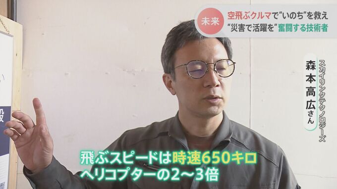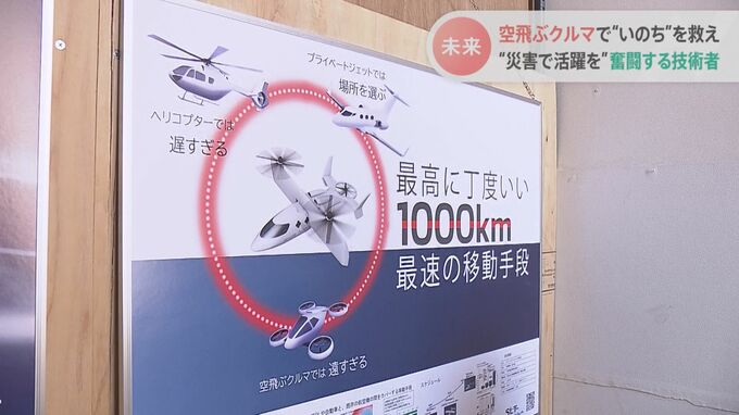 世界で開発が進められている「空飛ぶクルマ」は航続距離300キロまでの近距離が主流だが、森本さんたちは1000キロもの長距離を飛べる機体を目指しているという。
