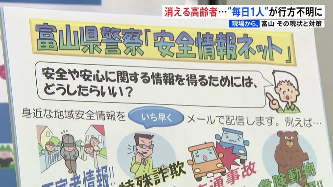 「シリーズ現場から、」です。富山県では毎日1人のペースで高齢者が行方不明になっています。「消える高齢者」の現状とその対策を取材しました。警察官「どこから歩いてこられたの?」男性「一番遠いところ」警察…