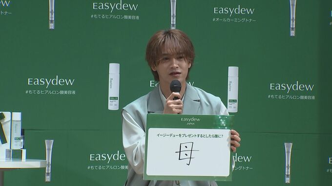 “もし化粧品を誰かにプレゼントするなら”と聞かれた井上さんは「母」と回答。“いつもありがとう。ずっとキレイでいてください”と、照れながらメッセージを送りました。