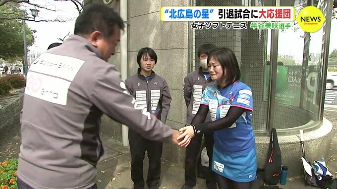 半谷選手の現役生活は、予想外の準々決勝敗退で幕を閉じました。この大会で半谷選手を含むメンバー3人が引退。試合後、チームの中本監督は、3人の労をねぎらいました。