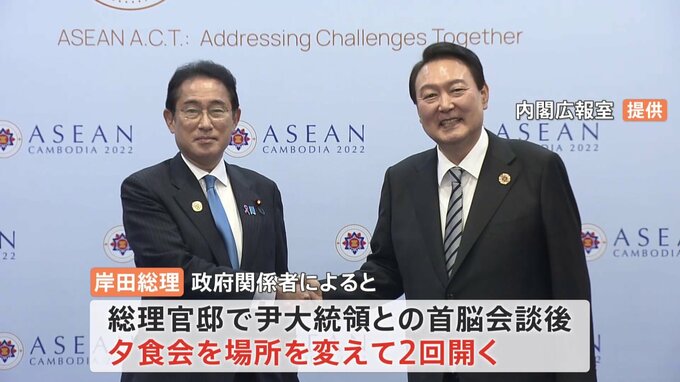政府は、あさって日本を訪れる韓国の尹大統領を歓迎する夕食会について、異例の「2階建て」とする方針を固めました。政府関係者によりますと、岸田総理は総理官邸で尹大統領との首脳会談後、夕食会を場所を変えて2…