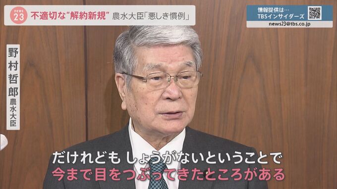 かつて農協の職員だった野村哲郎農水大臣は、14日の会見で、農協の共済事業で不適切な解約新規の契約が行われてきたことを認めた。