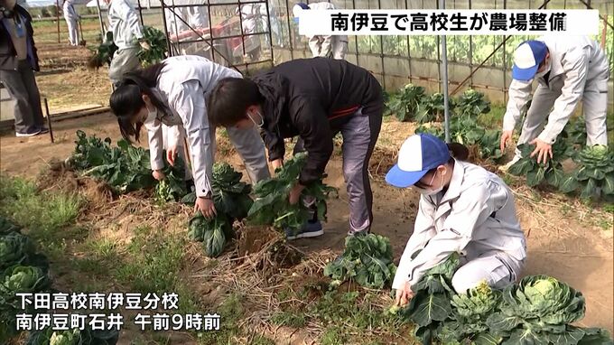 静岡県南伊豆町の下田高校南伊豆分校の生徒たちが3月15日、2023年度の農業実習に向けて校内の農場を整備しました。農場整備には南伊豆分校の1年生16人、2年生20人が参加し、芽キャベツやブロッコリーの片づけ、カ…
