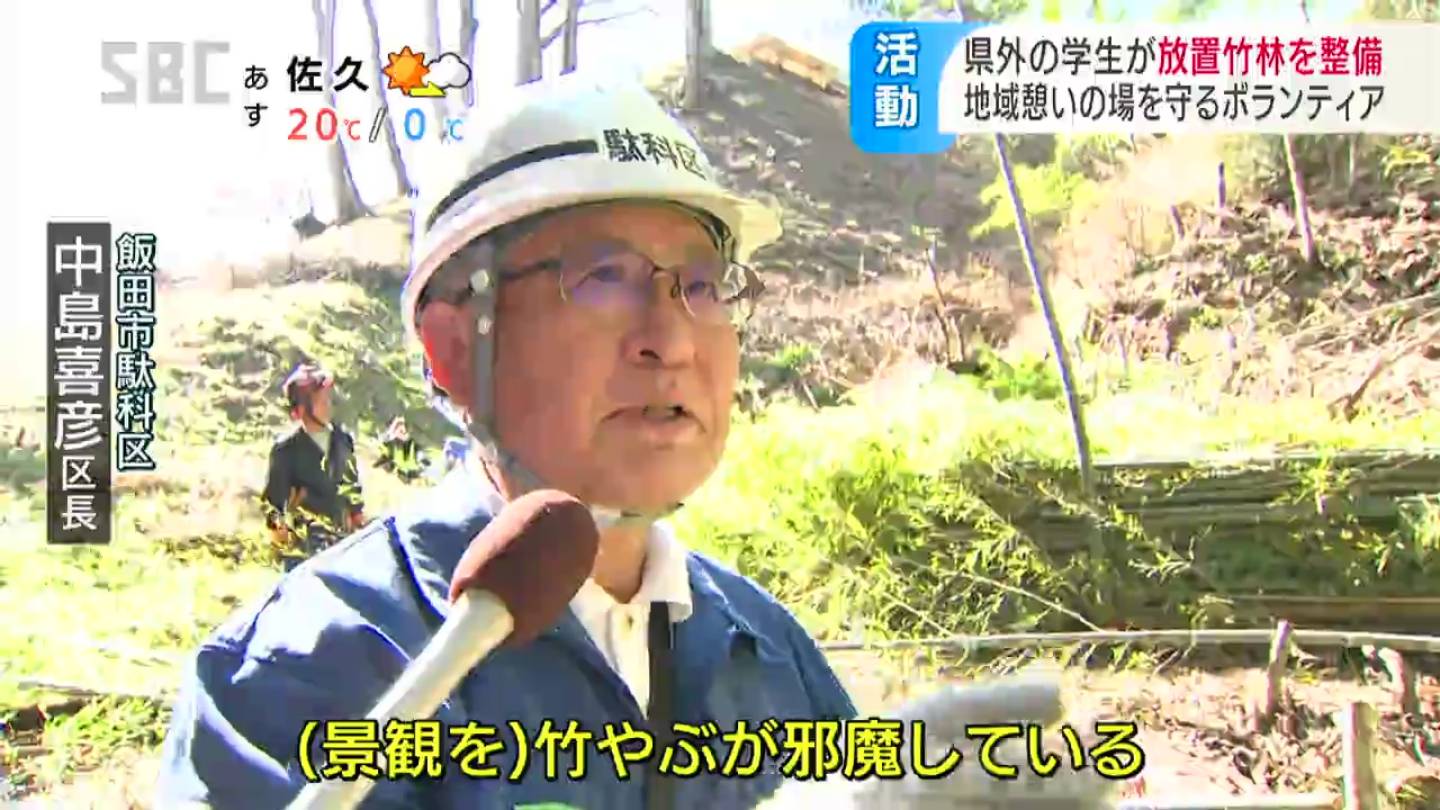 (地元の駄科区・中島喜彦区長)「景観を竹やぶが邪魔している。これを整備するのは本当に時間がかかって困っているが、こうやって来てくれてありがたい」