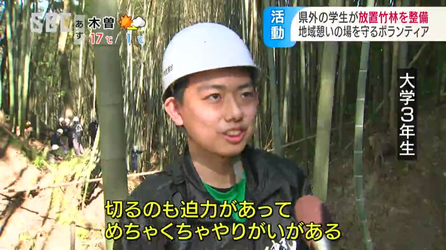 国際ボランティア学生協会・上杉佳菜(うえすぎ・かな)リーダー「竹害は大きな社会問題だと思うが、携わっているのは高齢者が多く、若者の関心がないところが大きな問題だと思う。私たちが若者でもできるということをどんどん発信していきたい」
