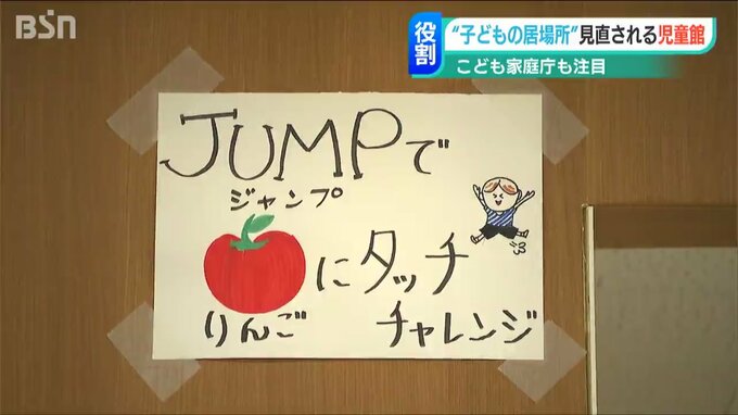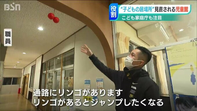 新潟市西蒲区の岩室地域児童館で、廊下を駆け抜けていく子どもたち…。