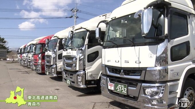 35人のトラック運転手で県内のほか長距離輸送も請け負っている青森市の企業です。いま、運転手の時間外労働の上限がこれまでの1176時間から原則960時間となり、荷物を運ぶ量が減ることや配送の遅れが懸念される「2024年問題」に向き合っています。