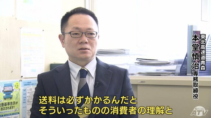 ※東北高速道青森 本堂慎治 専務取締役「送料無料といったものが当たり前な時代になっているので、送料は必ずかかるんだとそういったものの消費者の理解と法改正があったのでそういった運送会社の理解を荷主さんの方でしていただけたら」