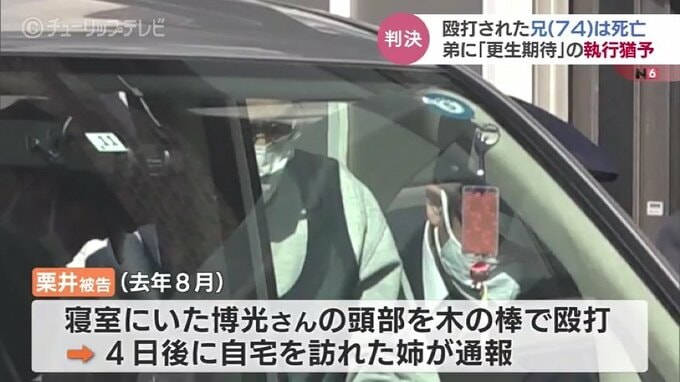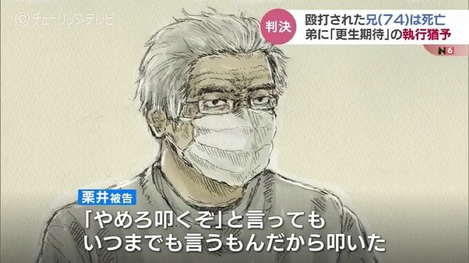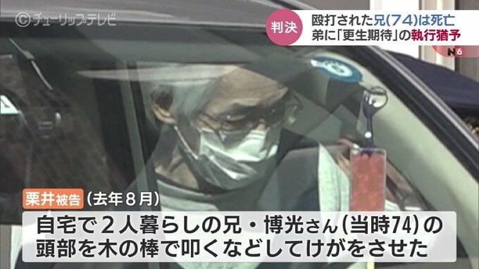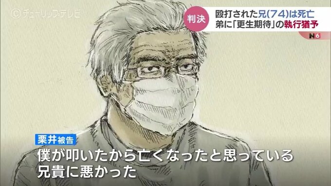 判決によりますと、去年8月、栗井被告は自宅で2人暮らしをしていた兄、博光さん(当時74)の頭部を木の棒で叩き、けがをさせたとされています。