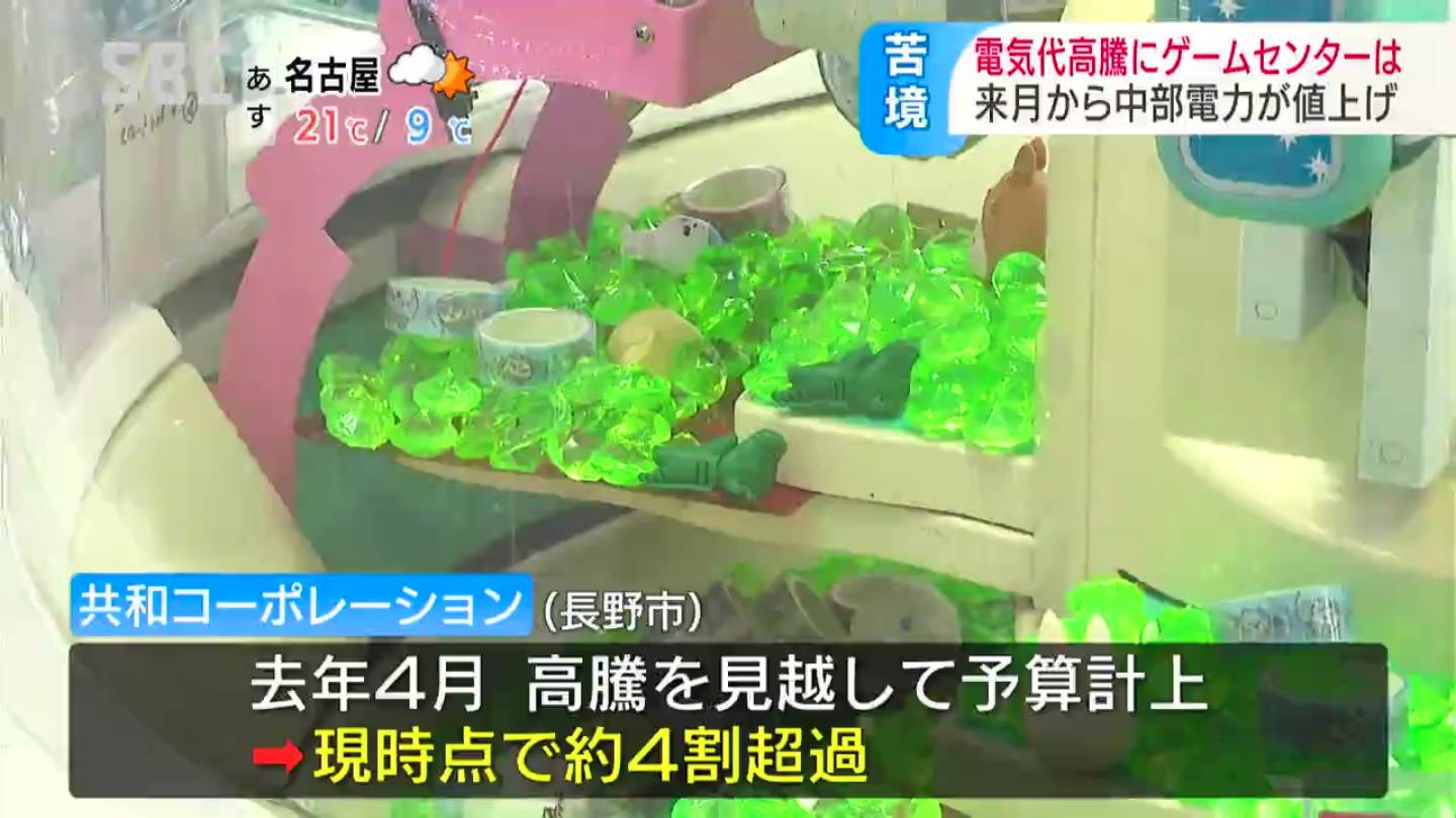 ゲームセンターを運営する長野市の共和コーポレーションでは、2022年4月の時点で、電気料金の高騰を見越して予算を計上しました。