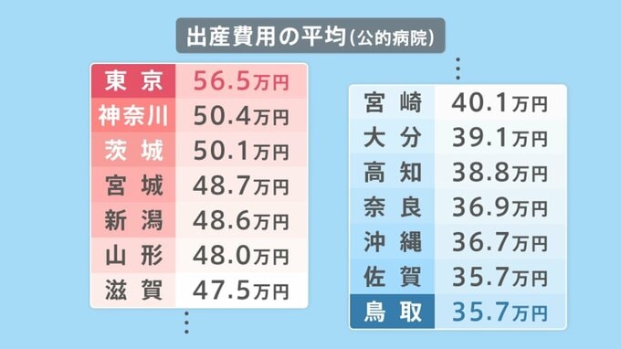 ひとつは出産費用(公的病院)に大きな地域差があることです。例えば東京だと平均56.5万円、一方で鳥取だと35.7万円。こうした20万円以上差がある場合、一律で一時金50万円の支給が果たして公平なのかといった理由があるようです。