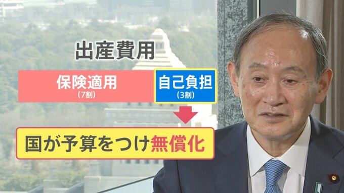 まず、菅前総理の提言を見ていきます。現在、原則「全額自己負担」となっている出産費用ですが、これをけがや病気と同じように保険適応にして、自己負担分となる3割程度をさらに国が予算をつけて無償化にするという案です。