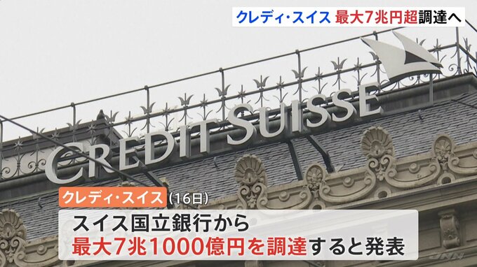 経営不安が広がっているスイスの金融大手、「クレディ・スイス」は先ほど、スイスの中央銀行から最大で日本円で7兆1000億円を調達すると発表しました。ただ、金融市場では銀行に対する信用不安が続いています。ク…