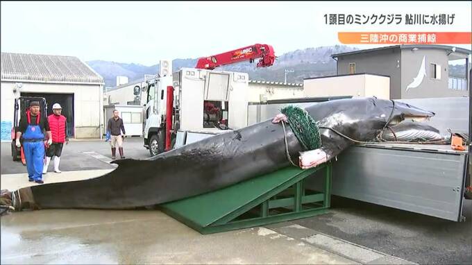 15日から始まった三陸沖の商業捕鯨で、16日、1頭目となるミンククジラが捕獲され、宮城県石巻市の鮎川港に水揚げされました。かつて捕鯨基地として栄えた鮎川に、ミンククジラが水揚げされるのは2年ぶりです。石巻…