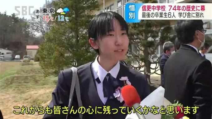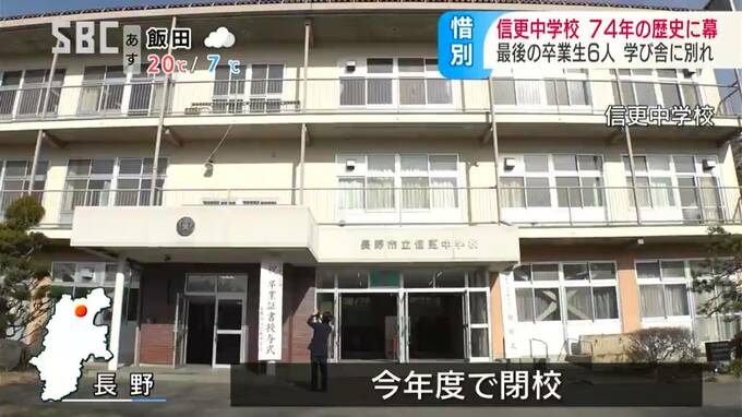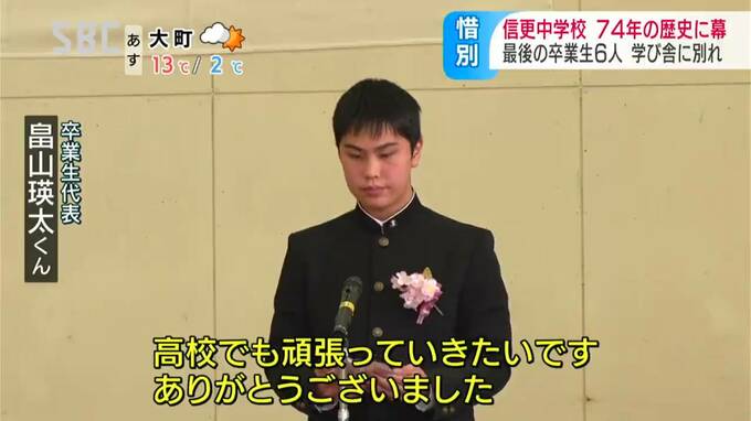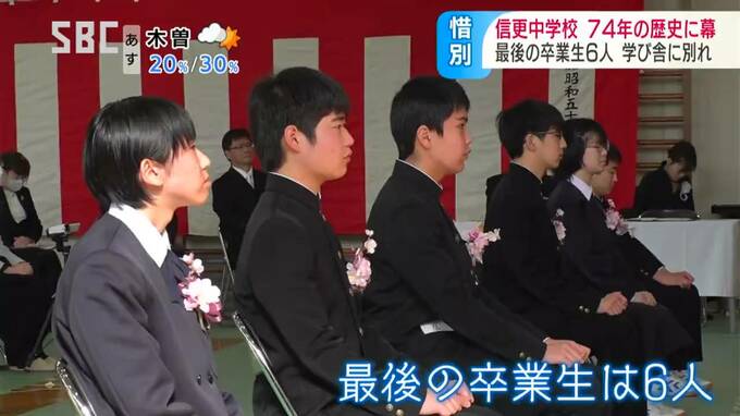 長野市の山あいにある信更(しんこう)中学校で最後の卒業生6人が巣立ち、74年の歴史に幕を降ろしました。