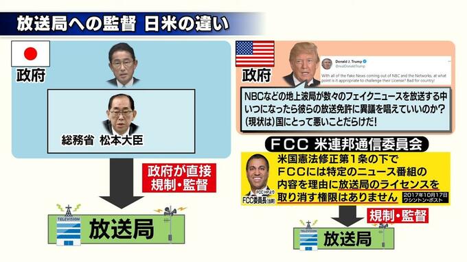 放送と権力の関係…トランプ政権時代にもこんなことがあった。トランプ大統領がテレビ局の免許取り消しを求めるような意見をツイートしたのだ。