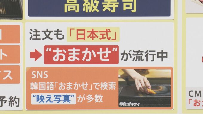 注文を見ていくと、日本式の“おまかせ”…いわゆる“大将のおまかせ”が韓国でも流行っているということです。SNSで韓国語「おまかせ」で検索すると、本当に映えた美味しそうな写真が多数出てきました。