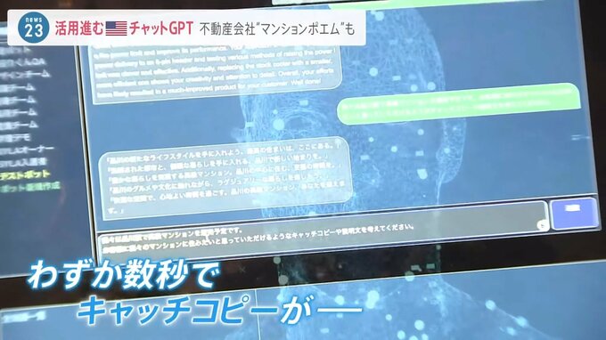 都内の不動産会社「シーラテクノロジーズ」。業務に対話型AI「チャットGPT」を活用しています。物件の広告に載せる“マンションポエム”といわれる“売り文句”も。
