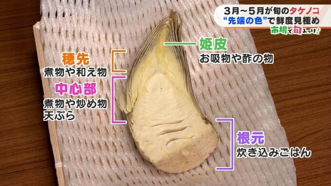 タケノコは部位ごとに特徴があり、料理は使い分けがおすすめです。
