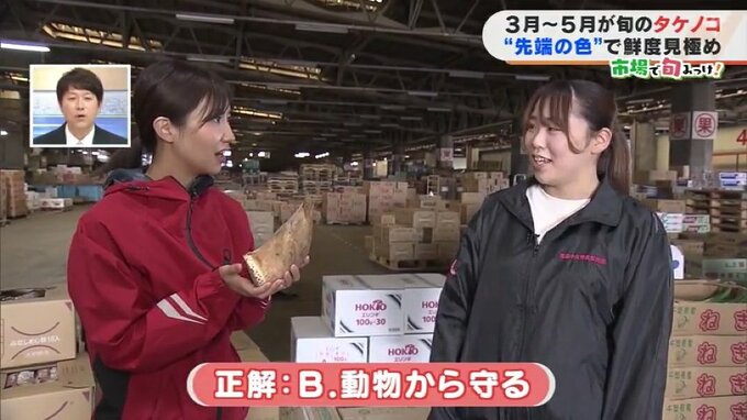佐藤来夢さん「タケノコの皮には、キツネやイノシシに食べられないようにする役割があります」