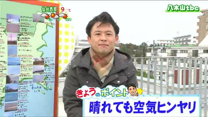 3月17日金曜日、宮城の30秒天気です。tbc気象台、今野桂吾気象予報士がお伝えします。「きょうは気圧の谷の影響で雲が目立ちますが、日差しは届くでしょう。西風がやや強めで、最高気温はきのうより1〜7度低くなる…