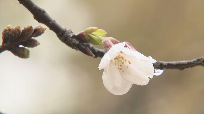 松山のサクラの開花発表が待ち遠しいところですが、標本木の花は咲き進んでいるのでしょうか?山田祐也アナウンサー「松山市の道後公園にある標本木なんですが、きょうはどうでしょう…。あ、ここに1輪花が咲…
