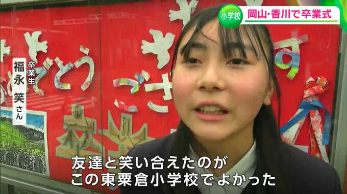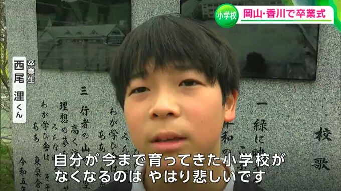 岡山県内の多くの公立小学校で卒業式が行われました。中には今年度で閉校する学校もあり、児童らがそれぞれの思い出を胸に学び舎をあとにしました。