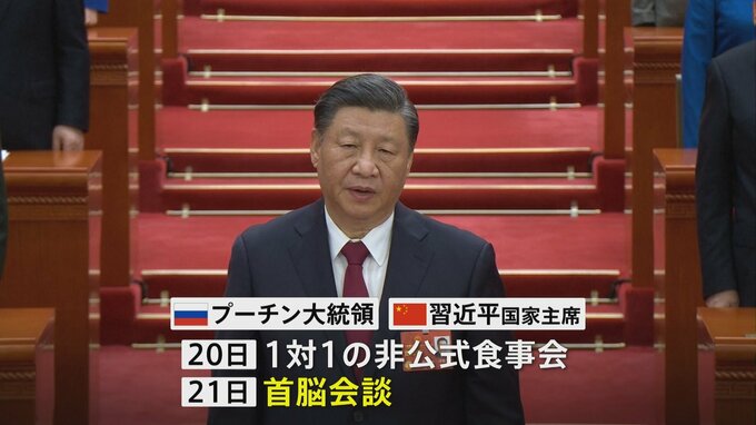 ロシア大統領府はプーチン大統領と中国の習近平国家主席との首脳会談が21日に行われると明らかにしました。習近平国家主席は20日から22日にかけてロシアを訪問しますが、ペスコフ大統領報道官は両首脳が20日に1対1…