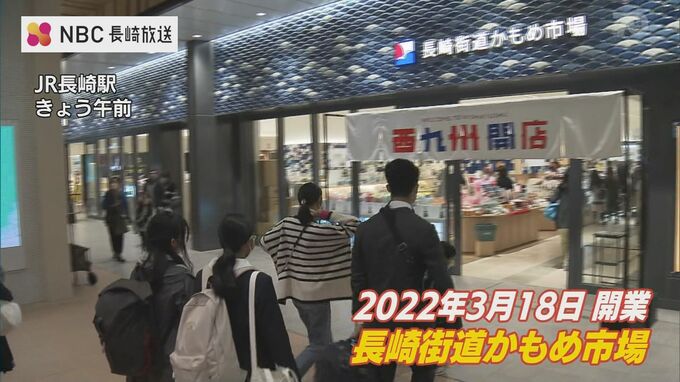 去年3月18日に開業した「かもめ市場」。長崎の陸の玄関口であるJR長崎駅の改札前に、土産物店や飲食店など50店舗以上が並び、賑わいを生み出しています。