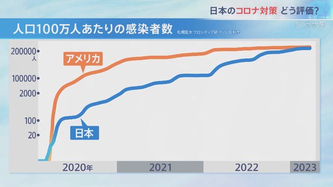 アメリカと比較すると、日本の感染者数の増え方は緩やかだった。