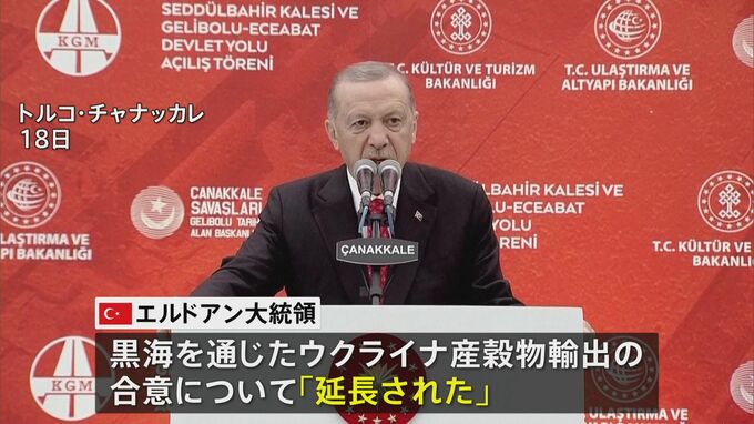 黒海を通じたウクライナ産の穀物輸出をめぐる合意が期限を迎えた18日、仲介役のトルコと国連は合意が延長されたと発表しました。ただ、延長期間については言及されておらず、ウクライナとロシアの主張が対立してい…