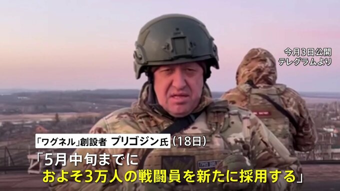 ウクライナで戦闘に参加するロシアの民間軍事会社「ワグネル」の創設者は、5月中旬までにおよそ3万人の戦闘員を新たに採用すると発表しました。ロイター通信によりますと、ロシアの民間軍事会社「ワグネル」の創設…