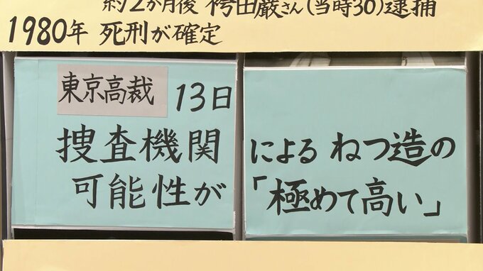 ところが13日、東京高裁は、捜査機関による証拠ねつ造の可能性が「極めて高い」との見解を発表し、死刑が確定した裁判のやり直し=「再審」への道が開かれたのです。いったい何がねつ造とされたのでしょうか…