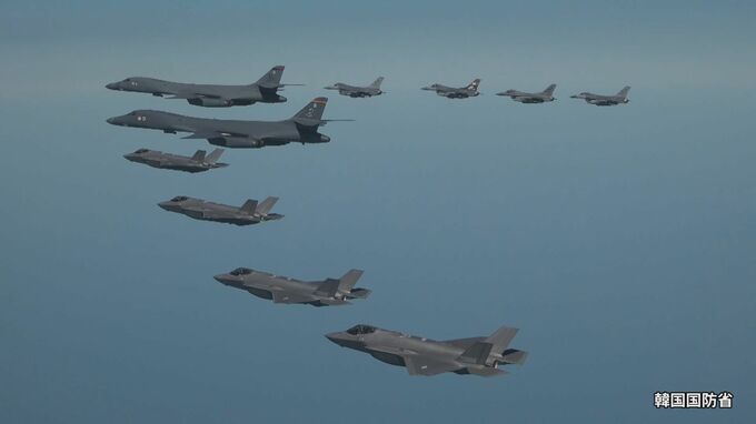 北朝鮮が相次いで弾道ミサイルを発射するなか、アメリカ軍の戦略爆撃機が韓国軍との合同訓練に参加しました。韓国国防省によりますと、アメリカ軍と韓国軍はきょう、朝鮮半島上空で戦略爆撃機「B1B」やステルス戦…