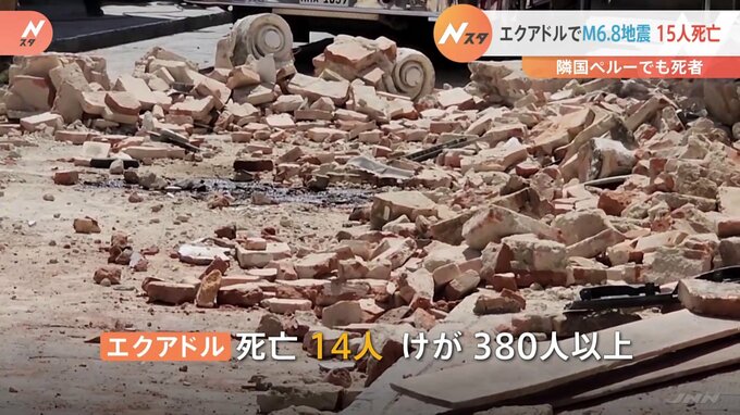 アメリカ地質調査所によりますと、南米エクアドルの南西部で18日、マグニチュード6.8の地震が発生しました。AP通信などは、エクアドルでこれまでに14人が死亡、380人以上がけがをしたほか、隣国ペルーで4歳の少女…