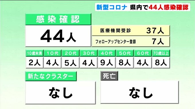 新型コロナウイルスについて、19日、高知県内で新たに44人の感染が確認されました。感染が確認されたのは、10歳未満から90歳以上までの44人で、このうち40代が9人、50代と70歳以上がそれぞれ8人などとなっています…