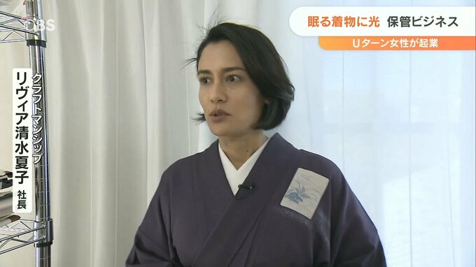 2年前、大分市にUターンしたリヴィア清水夏子さん。東京で着付の仕事していた際、着物の保管に困っている人が多いことに気づき、着物を預かるビジネスで起業しました。