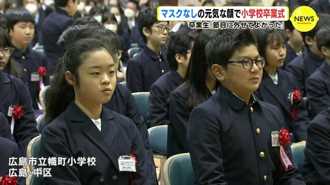 20日は、広島市や福山市など県内の多くの小学校で卒業式でした。広島市の小学校では、子どもたち全員がマスクを外して式に臨んでいました。