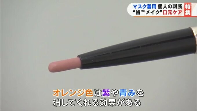 山野邉さん「オレンジ色のリップライナーです。オレンジ色は紫や青みを消してくれる効果があるので、唇のくすみがとれてリップの発色がきれいになったりお顔のくすみが抜けてパッと明るくなる効果がある」