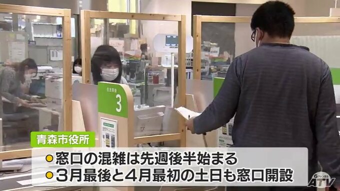 青森市によりますと混雑は先週後半から始まり、週初め、祝日をあすに控えた20日が混雑のピーク。4月上旬にかけてこの状況が続くと見込まれていて3月最後と4月最初の土日も窓口を開設して対応します。