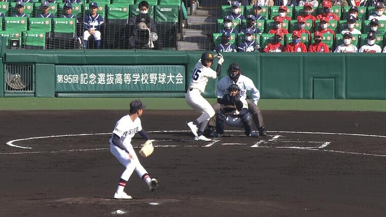 守っては、先発した右の高尾響投手が8回を無失点に抑える好投。この日3安打の眞鍋選手、ショートでたびたび好守備を見せた小林選手、9回に盤石のリリーフを見せた左の倉重聡投手と、攻守に隙のない戦いをみせた広陵が5対0の快勝。75回大会(2003年)以来の4度目のセンバツ制覇に向けて好スタートを切った。