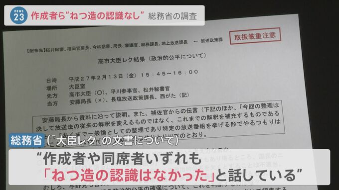 また、予算委員会で総務省は「大臣レク」の文書について、“作成者や同席者のいずれも「ねつ造との認識はなかった」と話している”と明らかにしました。