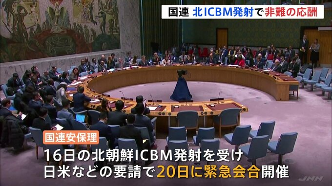 北朝鮮のICBM=大陸間弾道ミサイル発射を受け国連安全保障理事会の緊急会合が開かれましたが、日本や欧米各国とロシアや中国との間で非難の応酬となりました。志野光子 国連次席大使「北朝鮮は安保理が沈黙してい…