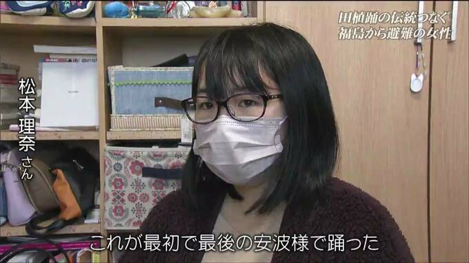宮城県に避難してきた松本理奈さん。仙台市内の大学に通っています。初めて田植踊を踊ったのは12年前、震災直前の2011年2月でした。