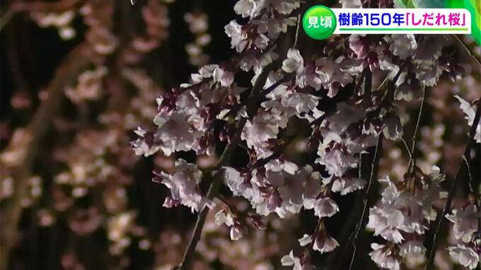 淡いピンクの花が夜空に浮かび上がります。高さ15メートル、津山市の千光寺にある樹齢150年のしだれ桜です。連日のぽかぽか陽気で一気につぼみが開き、例年よりも1週間ほど早く見ごろを迎えたといいます。20日夜からはライトアップが始まり、訪れた人たちが一足早い花見を楽しんでいました。