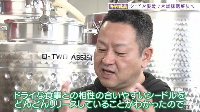 この企業、元々は温泉施設を運営してますが、街の課題を解決したいという思いから、シードル製造へ乗り出しました。目の前にリンゴ畑が広がる平川市の「CRAZY(クレイジー)CIDER(サイダー)FACTORY(ファクトリー)」